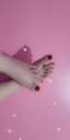 package of feet with red nails from various angles.